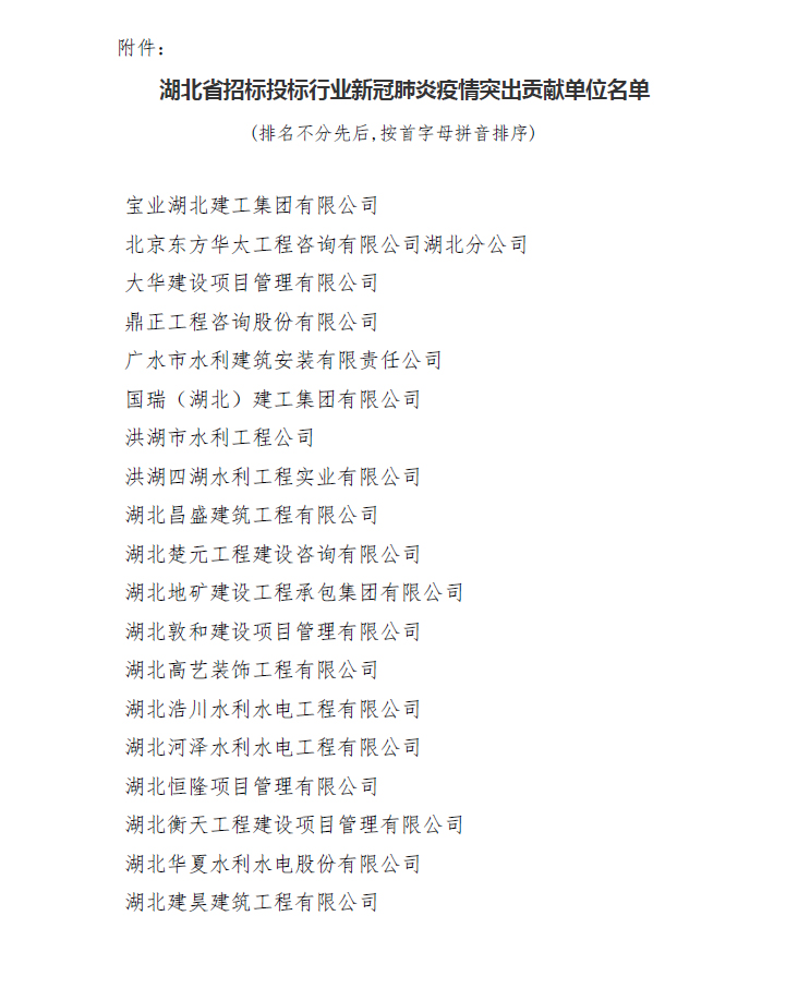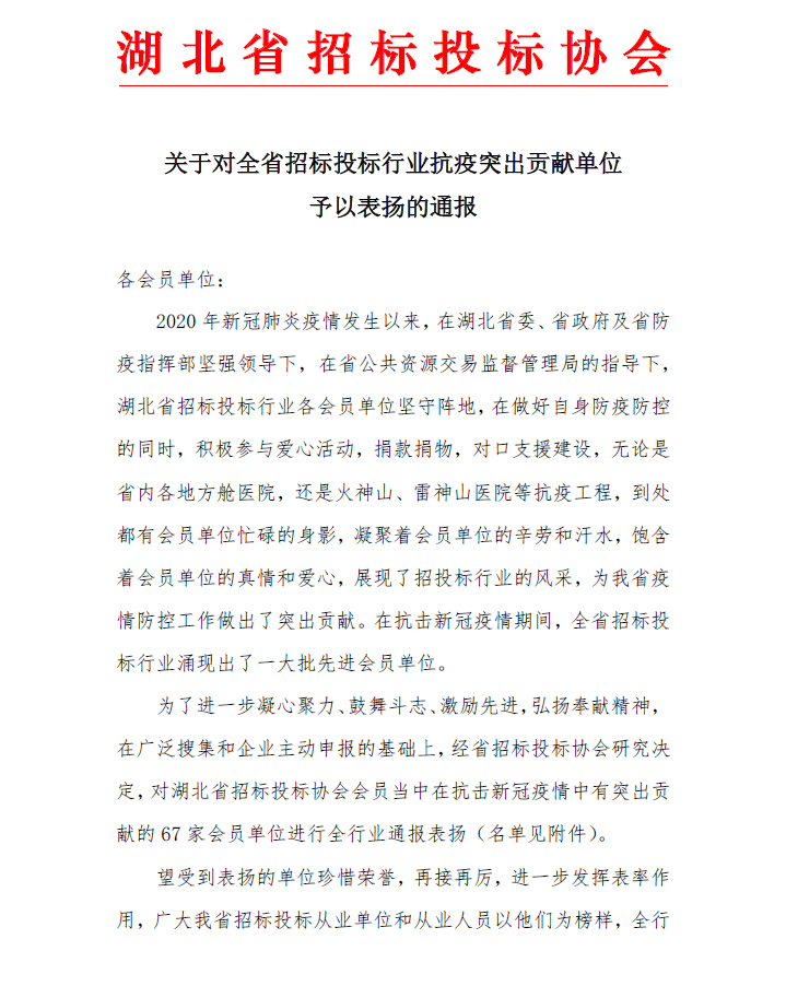 關于對全省招標投標行業抗疫突出貢獻單位予以表揚的通報