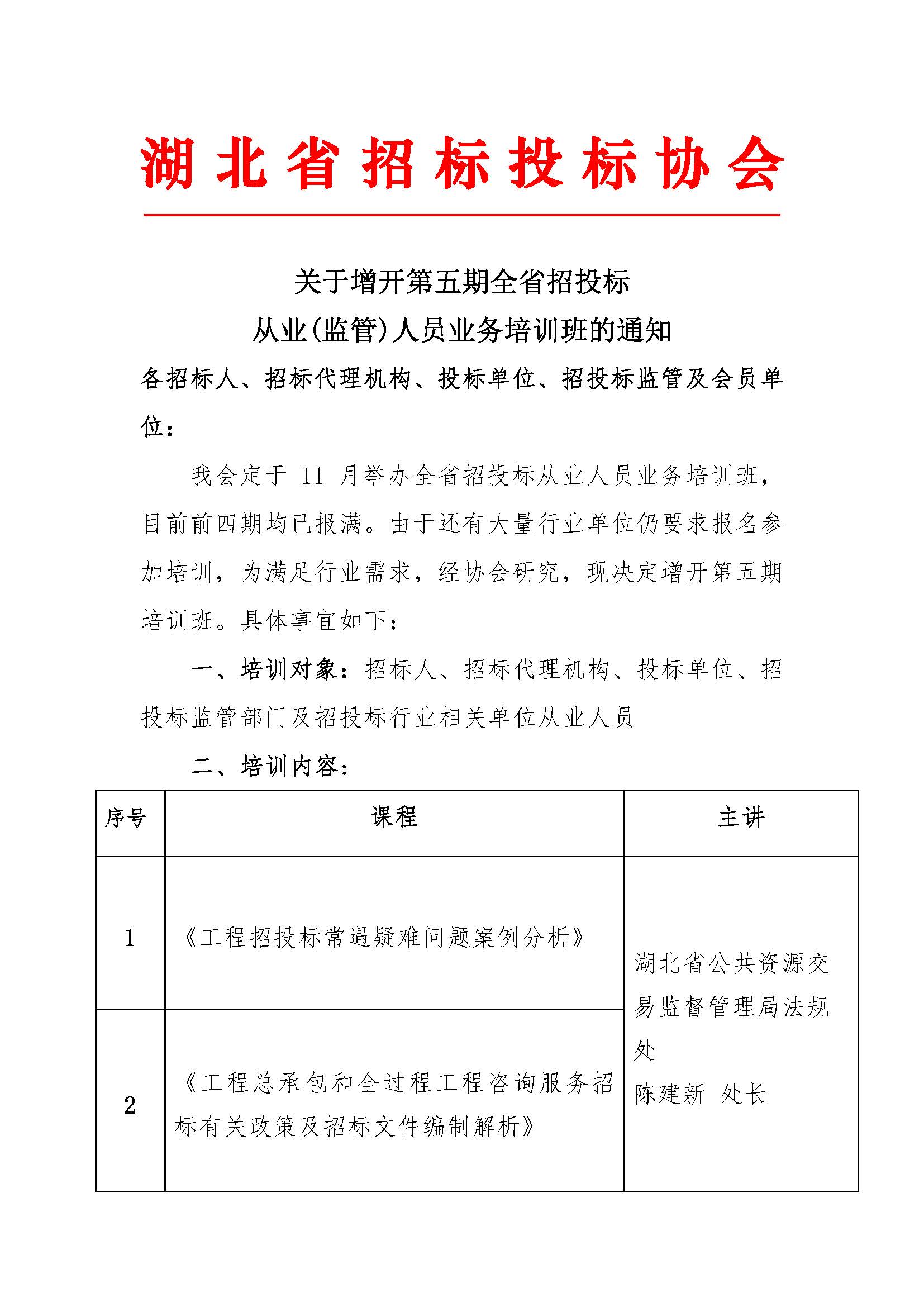 關(guān)于增開第五期全省招投標(biāo)從業(yè)(監(jiān)管)人員業(yè)務(wù)培訓(xùn)班的通知