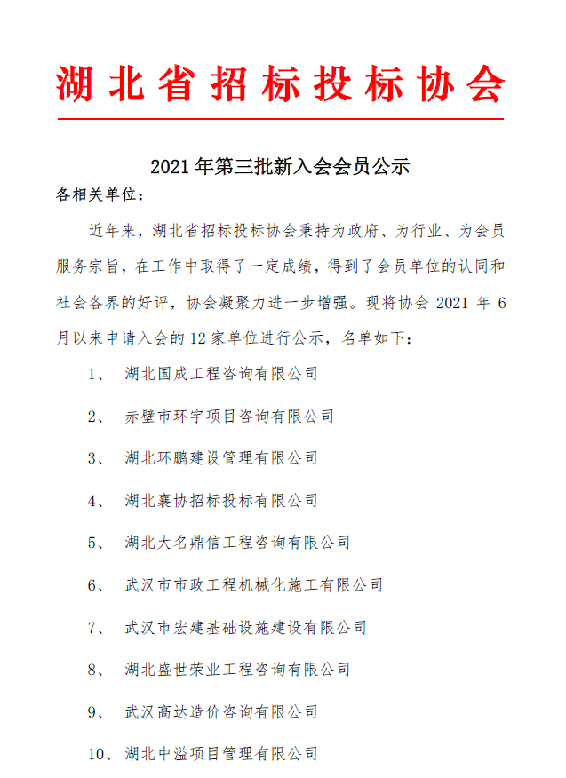 湖北省招標投標協會關于開展對《標準文件》意見征集工作的通知