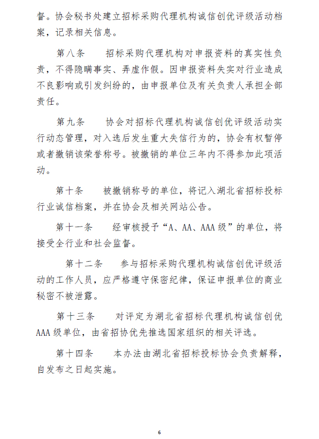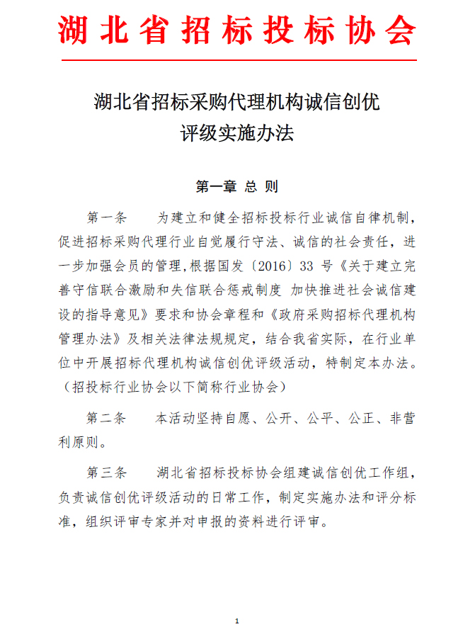 湖北省招標采購代理機構誠信創優評級實施辦法(修訂版)