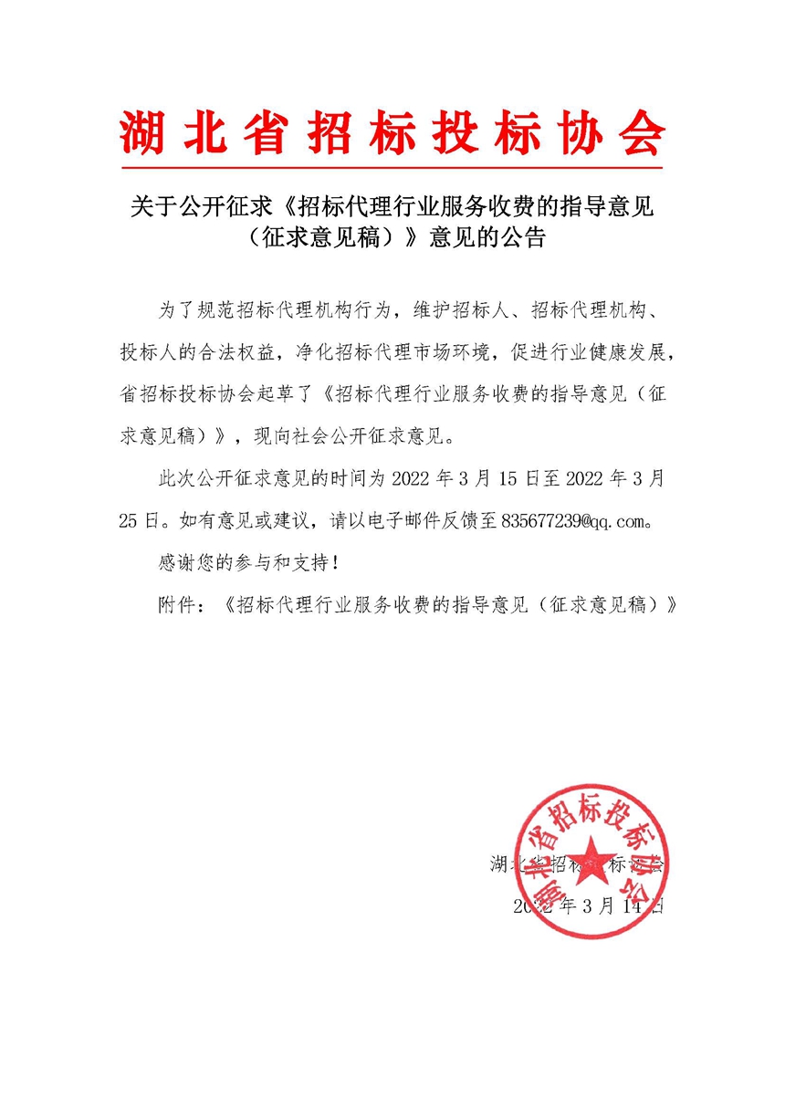 關于公開征求《招標代理行業服務收費的指導意見(征求意見稿)》意見的公告