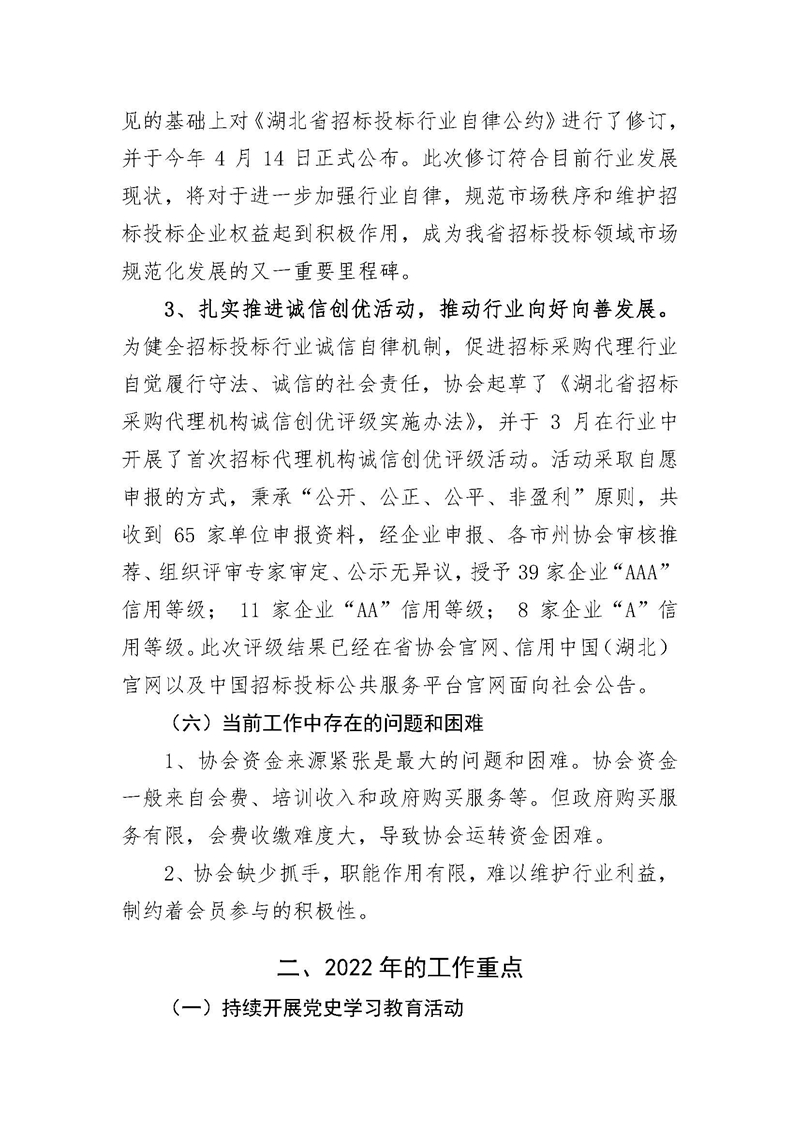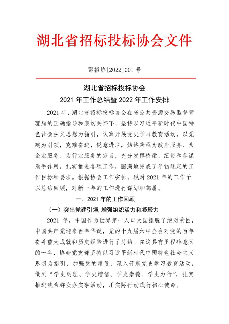 湖北省招標投標協會2021年工作總結暨2022年工作安排