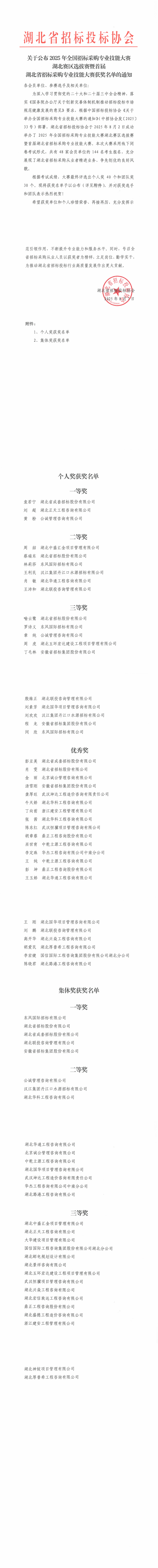 關于公布2025年全國招標采購專業技能大賽湖北賽區選拔賽暨首屆湖北省招標采購專業技能大賽獲獎名單的通知