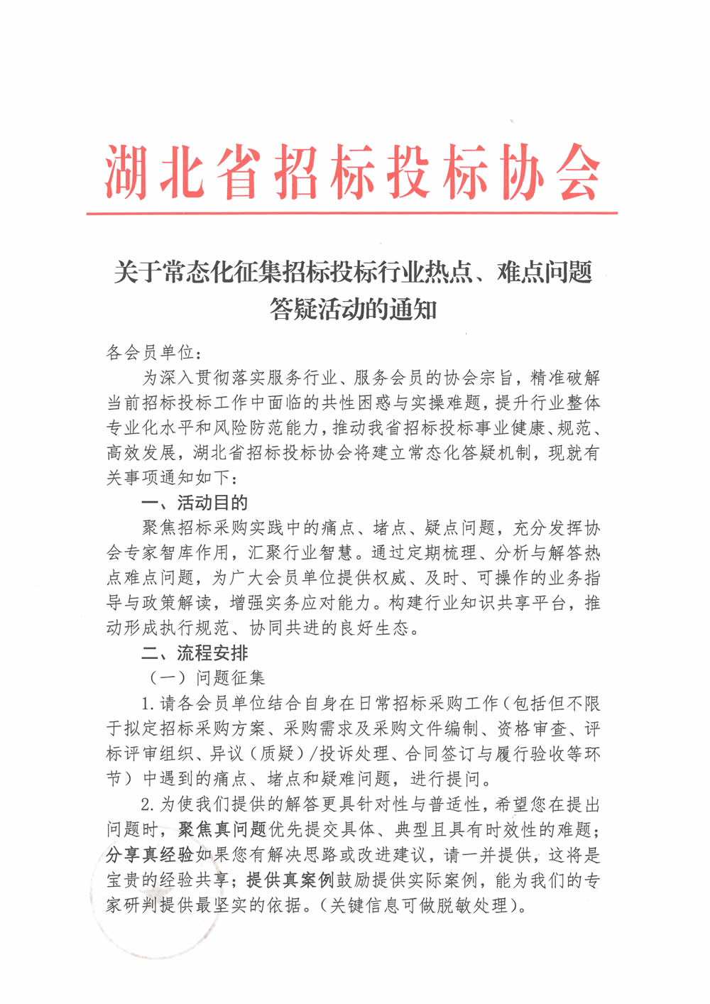 關(guān)于常態(tài)化征集招標(biāo)投標(biāo)行業(yè)熱點(diǎn)、難點(diǎn)問(wèn)題答疑活動(dòng)的通知
