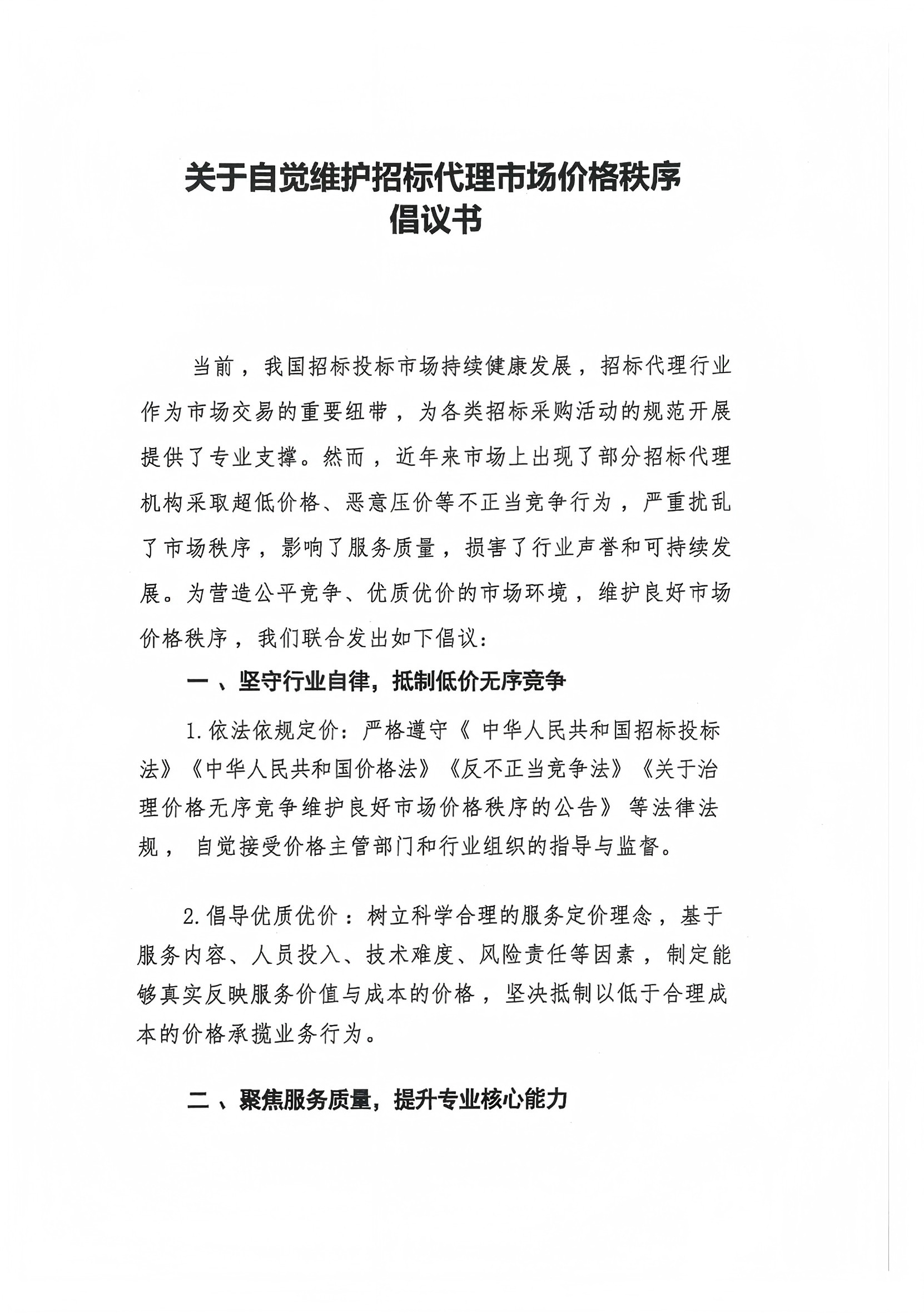 十七省區(qū)市關(guān)于自覺維護招標代理市場價格秩序倡議書
